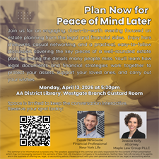 Join Jessica Kelly of Maple Law Group and Derek Jankowski of New York Life for hors d’oeuvres, networking, and an interactive conversation on estate planning.